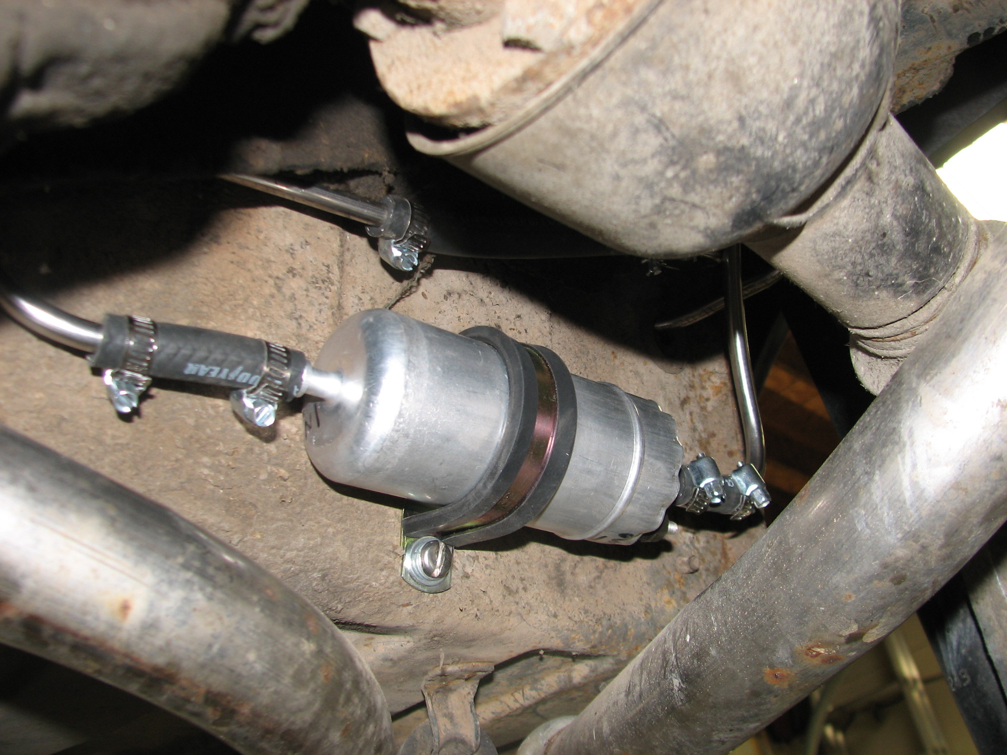 The fuel pump mounted underneath the car.